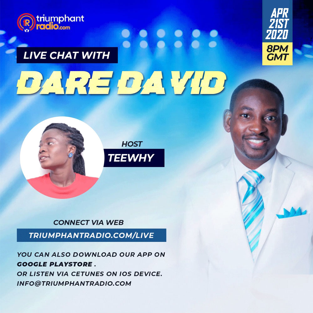 Get ready this Tuesday 21st April, 2020 for and interview session with Minister Dare David .